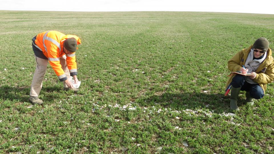 Dominique Harmand, professeur de géographie et Vincent Ollive, maître de conférences et géomorphologue à l’Université de Lorraine, testent la mise en place de marqueurs sur le futur site Cigéo.