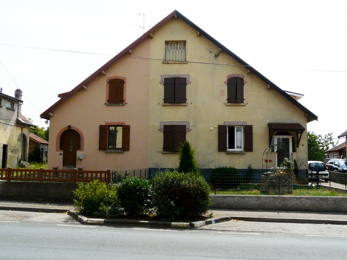 La maison jumelée de type "chalet" contient deux logements de taille différente, ce que révèlent les ravalements contemporains. (Photographie Elise Pagel-Prévoteau / LHAC / ENSA-Nancy - © URCAUE Lorraine)