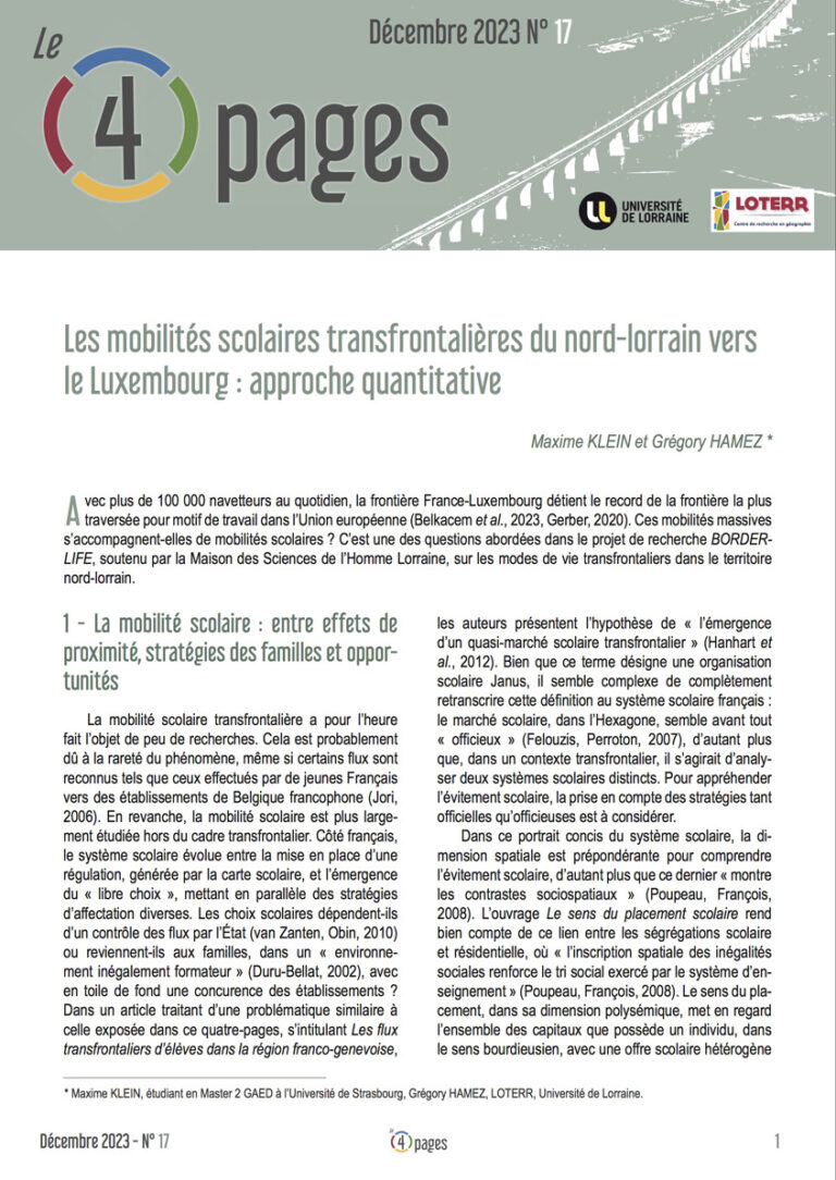 La « carte scolaire » est un élément central du système éducatif français qui a de nombreuses implications sur le quotidien des enfants. C’est pour cette raison que nous nous y intéressons dans le cadre de nos travaux de recherche sur les mobilités enfantines. Ceux-ci visent à saisir l’impact des choix parentaux de scolarisation sur la mobilité des enfants et s’inscrivent donc dans l’axe 2 du laboratoire. Cet article vise à présenter les difficultés que posent sa mise à disposition, dans un premier temps, et son traitement, dans un second temps.