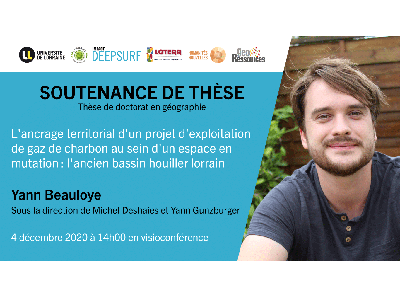 Yann BEAULOYE soutiendra sa thèse sur « L’ancrage territorial d’un projet d’exploitation de gaz de charbon au sein d’un espace en mutation : l’ancien bassin houiller lorrain », le vendredi 4 décembre 2020 à 14h en visioconférence.