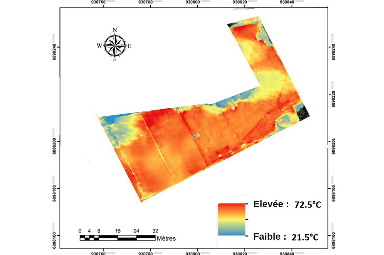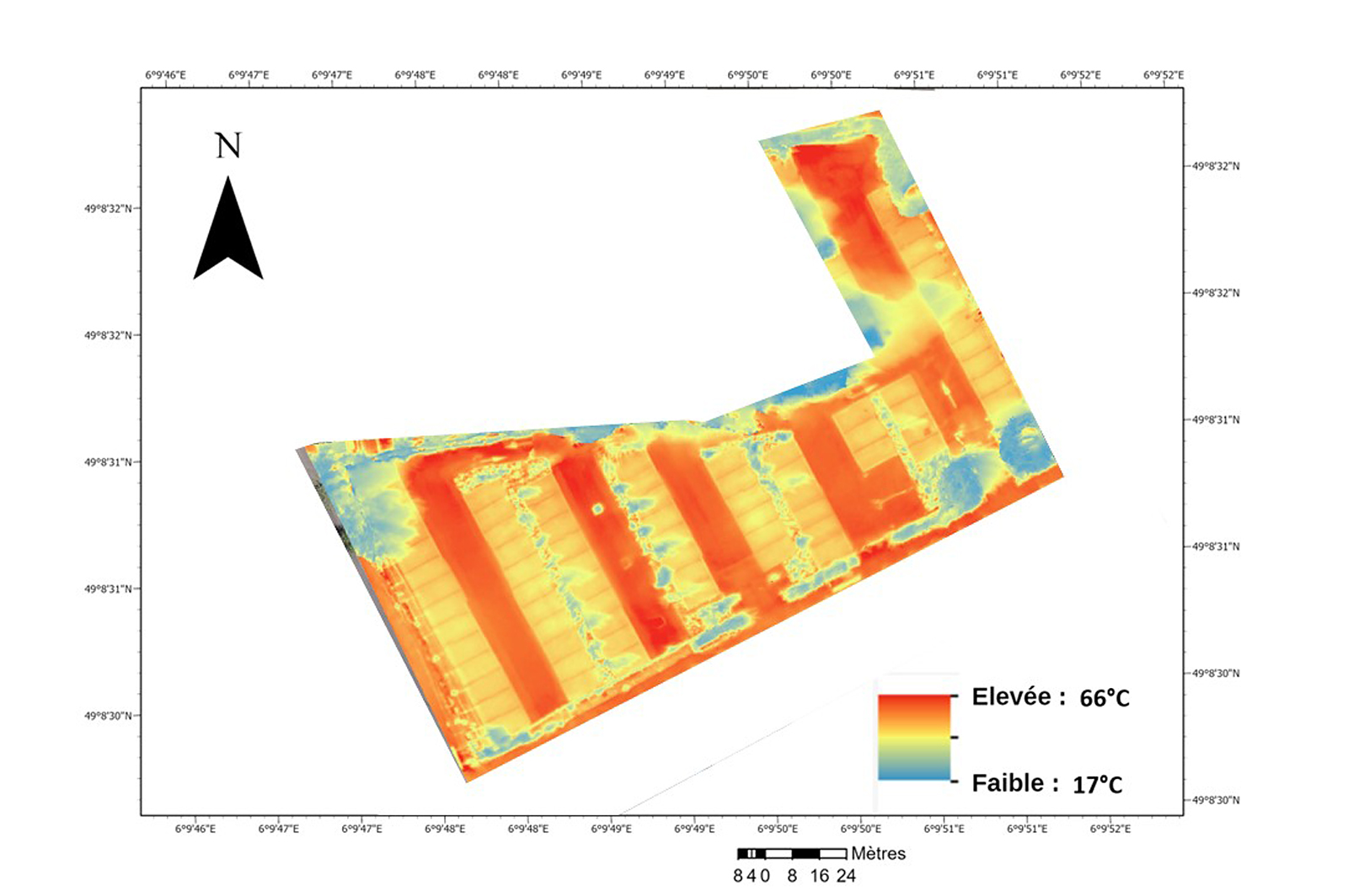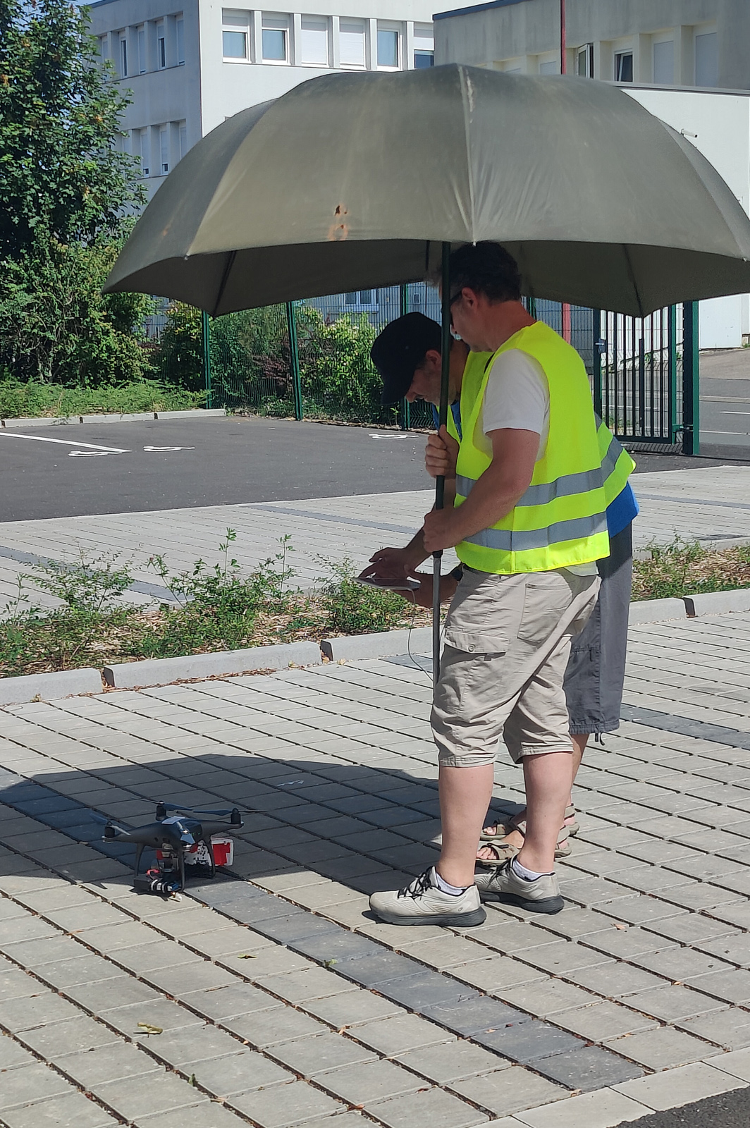 La campagne avait pour objectif de cartographier après travaux, les zones de surchauffe à l’aide d’une cartographie thermique infrarouge par drone en utilisant le même protocole que celui déployé le 23 juillet 2021 avant travaux (voir l’état initial du parking avant travaux ci-dessous).